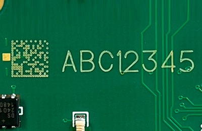 Serial numbers, date codes, and 2D Data Matrix are common on both boards and assemblies. Data Matrix is favoured for high data density and robust decoding in small cells. Typical locations include solder mask windows, underside areas, or stiffeners on flex; fiducials nearby simplify alignment. Integrated vision can locate the board, apply offsets, and immediately read and grade the result to ISO/IEC 15415 or 29158, with grade images exported to MES or quality systems to support IPC-1782. UV wavelength reduces delamination risk and helps maintain solder mask integrity. Shallow engraving recipes and 3D height correction help place marks near components without compromising nearby pads or traces.