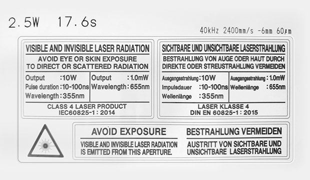 *Sample marked with KEYENCE MD-U2510 UV Laser Marker.